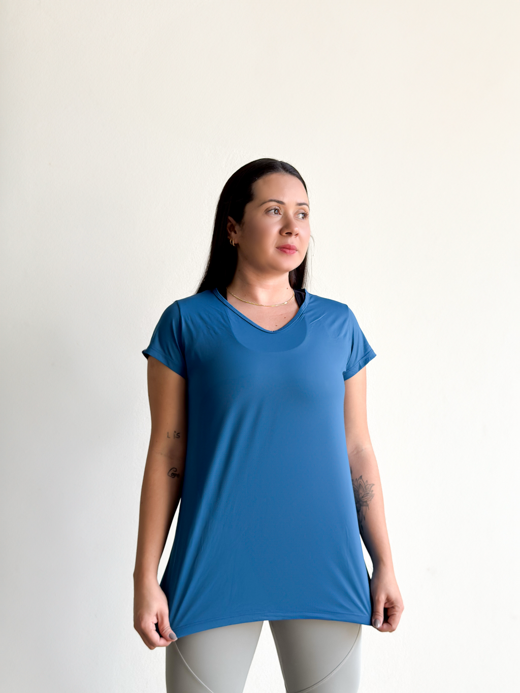 Baby Look Ice, confeccionada em tecido Dinamic Ice (90% poliamida e 10% elastano), que proporciona toque gelado, respirabilidade e conforto térmico. Sua elasticidade garante liberdade de movimento, enquanto a modelagem soltinha oferece caimento leve e versátil. Com design básico e funcional, é uma peça prática que une frescor e estilo, ideal para treinos, passeios e momentos casuais.
